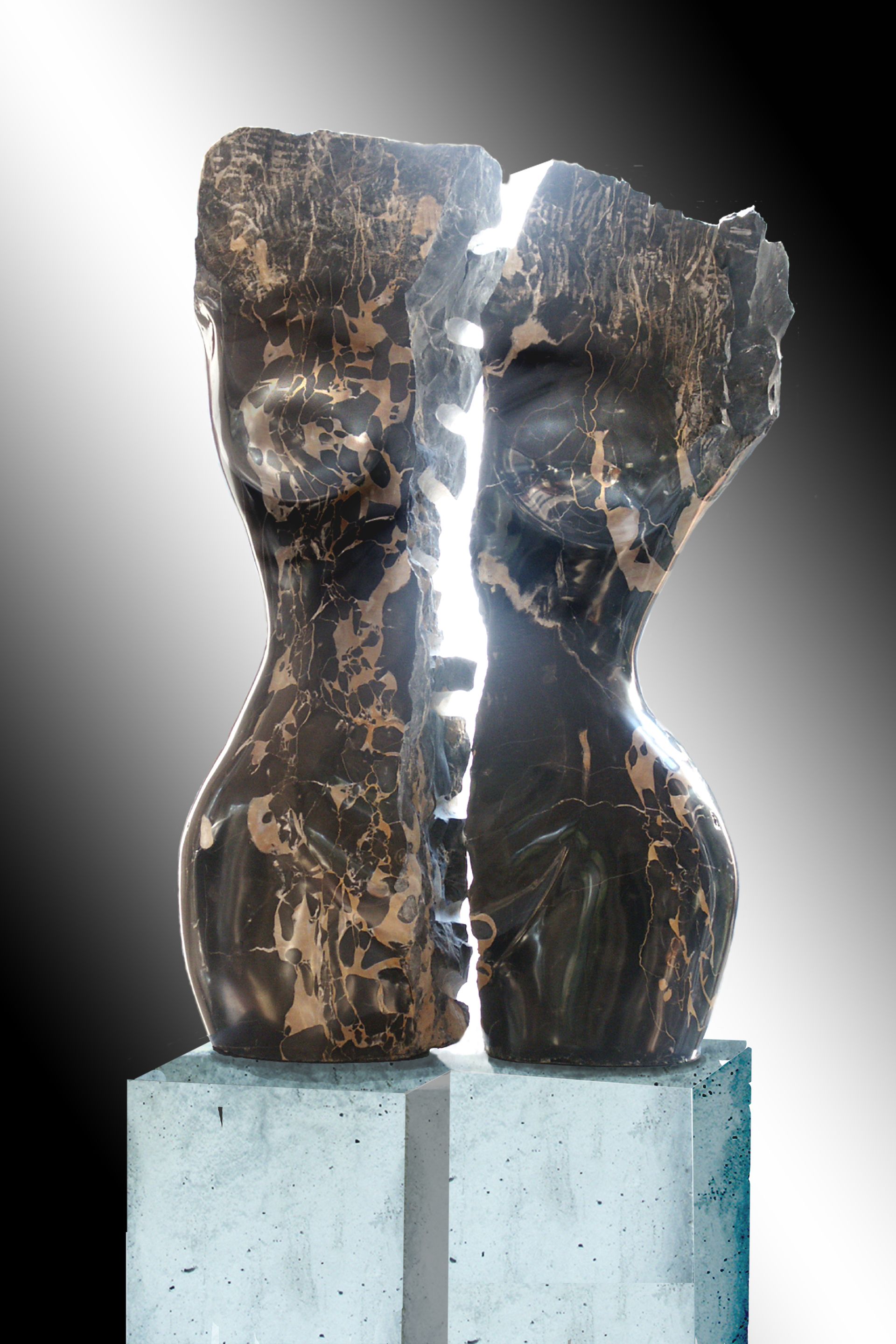 Ik heb 25 jaar elk jaar 6 weken in Italiaanse studio`s gewerkt waar ik mijn beelden grof uit de steen vorm gegeven heb en daarna verder thuis heb afgewerkt.