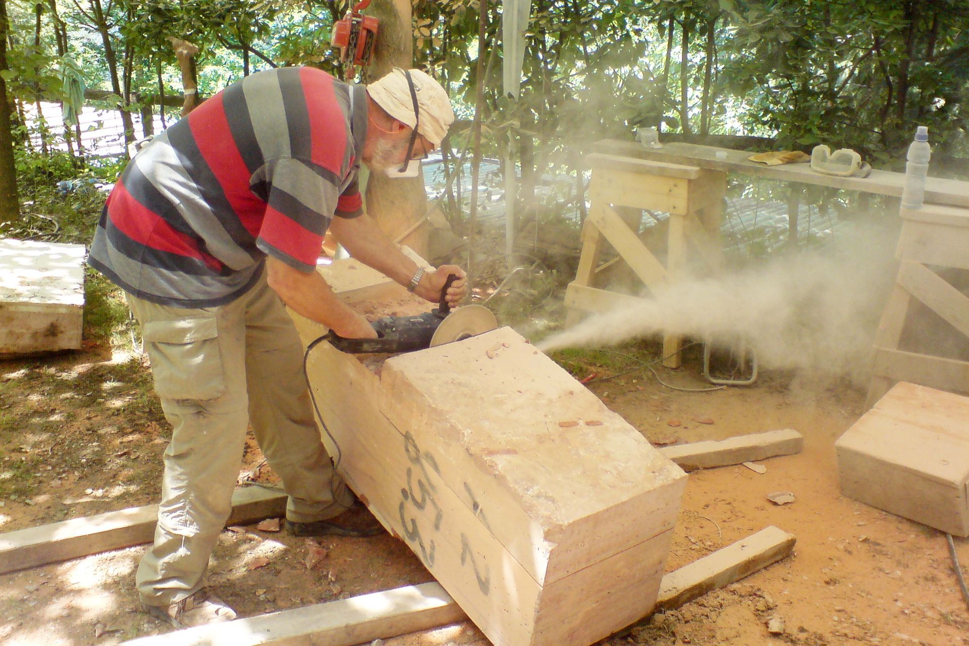 Op een dag kreeg ik een uitnodiging voor een workshop beeldhouwen ,3 dagen cursus en 14 dagen thuis hakken en m'n eerste beeld was klaar.