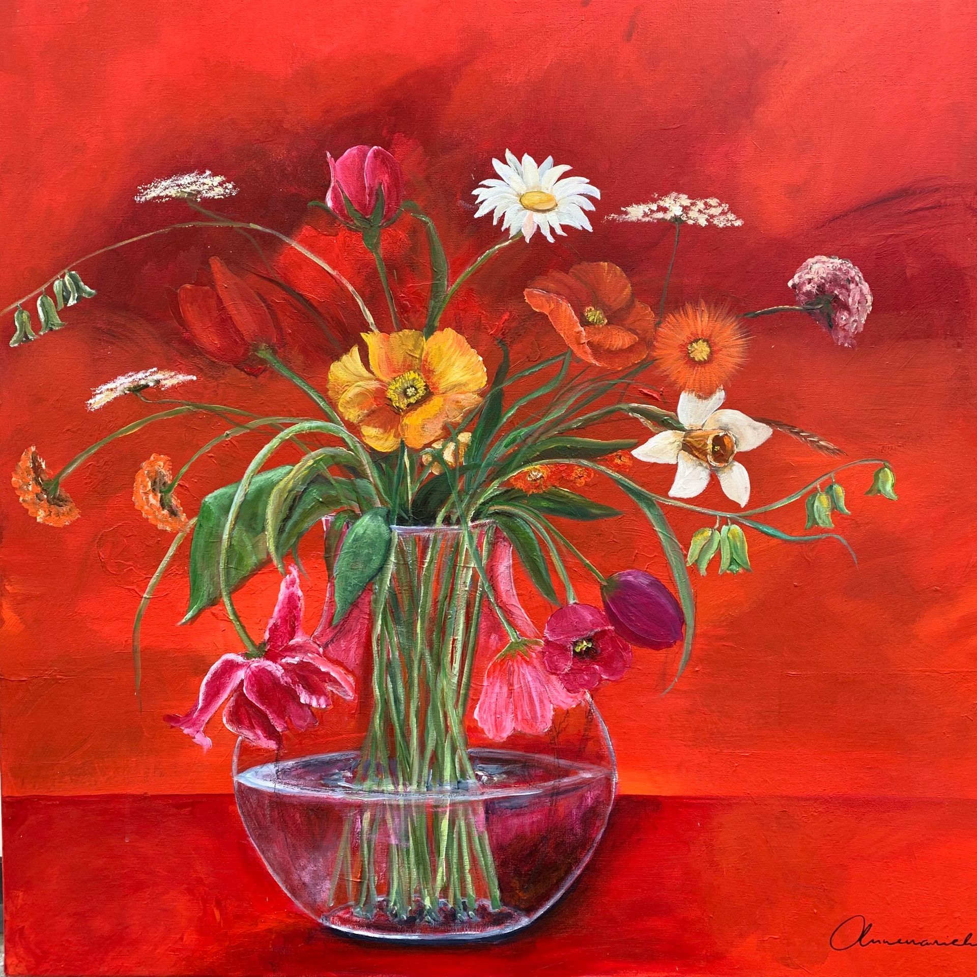 Over                                                                  Mijn schilderijen maak ik altijd met liefde en gevoel. De ene keer uit zich dat in zachtheid en evenwicht, de andere keer in passie en durf. Heldere kleuren, organische vormen en de speling van licht en donker kenmerken mijn schilderijen in al hun diversiteit.                                                       "                                  Ik hoop mensen blij te maken met mijn schilderijen. Dat is de reden van hun bestaan"                                                                                                            VAZEN                                                                   De kunstvazen zijn gebaseerd op de schildertechnieken die ik op schilderdoek toepas. Veel van mijn vazen zijn te zien en beschikbaar in de Singer Shop in Laren. Met iedere nieuwe tentoonstelling in museum Singer Laren maak ik een serie vazen waarin iets terug te vinden is van de tentoonstelling in kleur en/of onderwerp. Ook heb ik eerder een serie vazen beschilderd met eigen thema's van bloemen, vlinders en kleuren. Deze serie vazen hebben elk een meisjesnaam gekregen met de beginletters in de volgorde van het alfabet.                                                                                                                        SCHILDERIJEN                                                                   In mijn schilderijen zoek ik naar schoonheid en balans en doe dit door de focus op twee hoofdthema's: bloemen en portretten.                                                                               Mijn rozen-, papaver-, bloesem- en tulpenschilderijen zijn bedoeld om vreugde te brengen en een krachtige sfeer vast te leggen.                                                                               Vaak zeggen bloemen iets over het hart met hun vorm en kleur, met hun variatie aan composities.                                                                               Met mijn portretten hoop ik een blijvende herinnering te creëren die naarmate de tijd verstrijkt steeds dierbaarder wordt en uitnodigt de portretten steeds weer opnieuw te bekijken en te verkennen.                                                                                                       De Small Treasures zijn kleine schilderijtjes van de natuur en alledaagse dingen.
