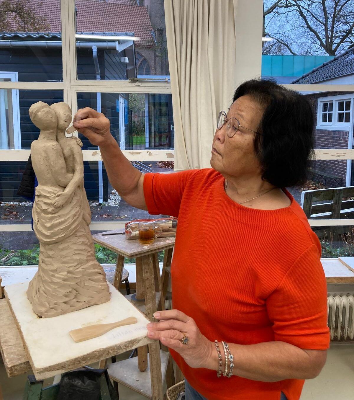 Na met veel soorten materialen kennis te hebben gemaakt (papier, stof, rubber) is Lilian uiteindelijk beland bij klei, steen en hout. Beelden dus.