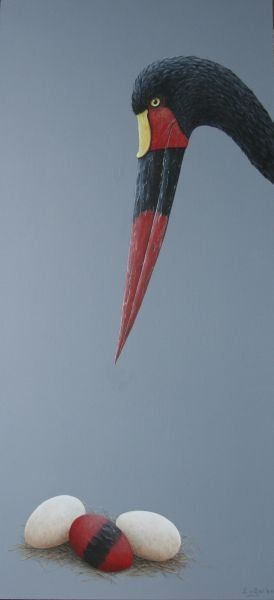 De schilderijen zijn realistisch weergegeven op doek of paneel, gedetailleerd uitgewerkt in transparante lagen over elkaar met soms een knipoog naar de realiteit.