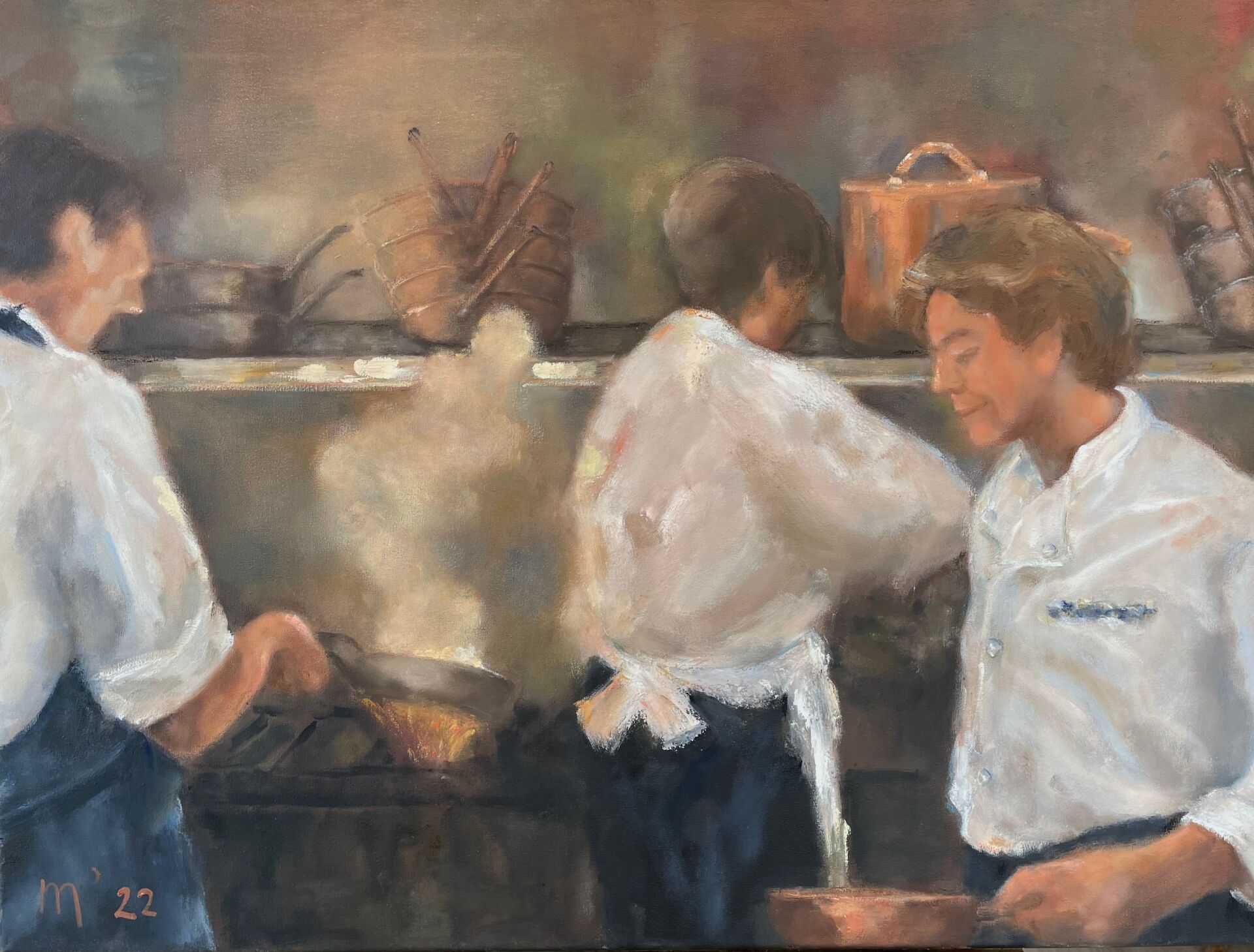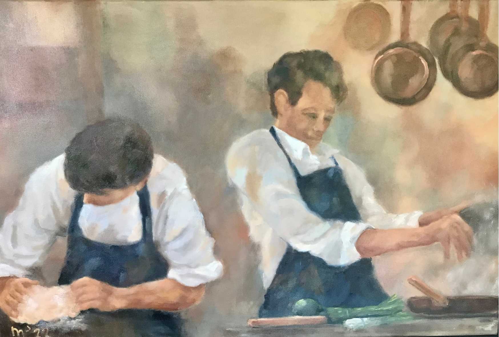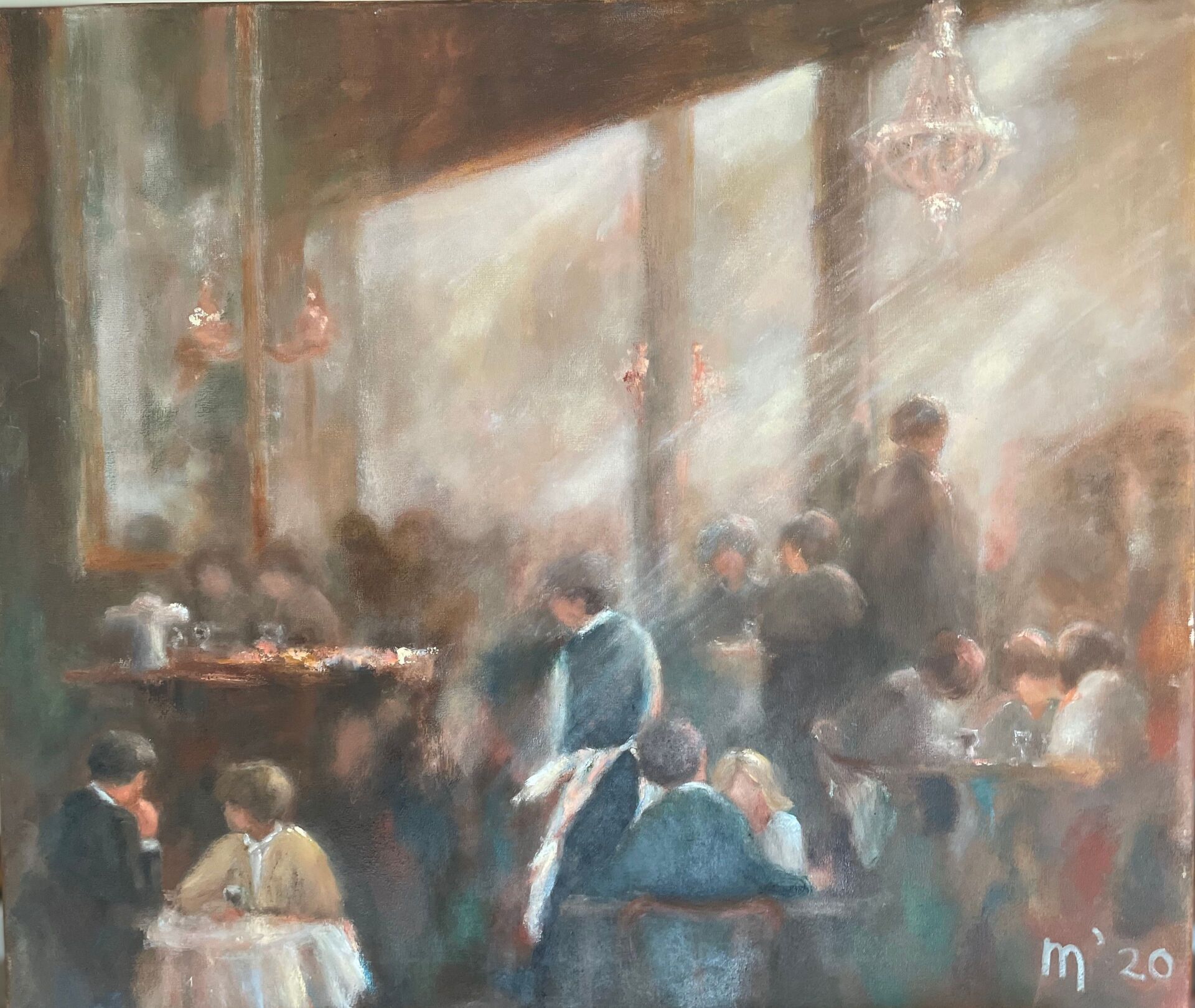Vaak voorkomende thema's in mijn werk zijn gezellige café en keukentaferelen en figuratieve voorstellingen.