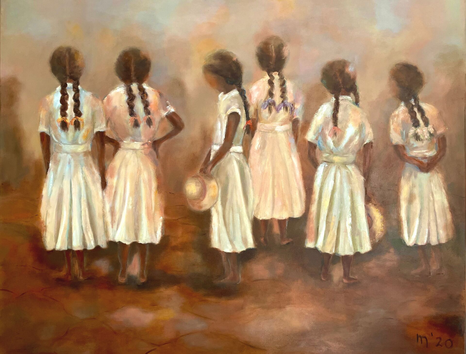 Mijn werk wordt bestempeld als figuratief met een losse toets. Ik schilder met olieverf op doek, meestal in groot formaat.