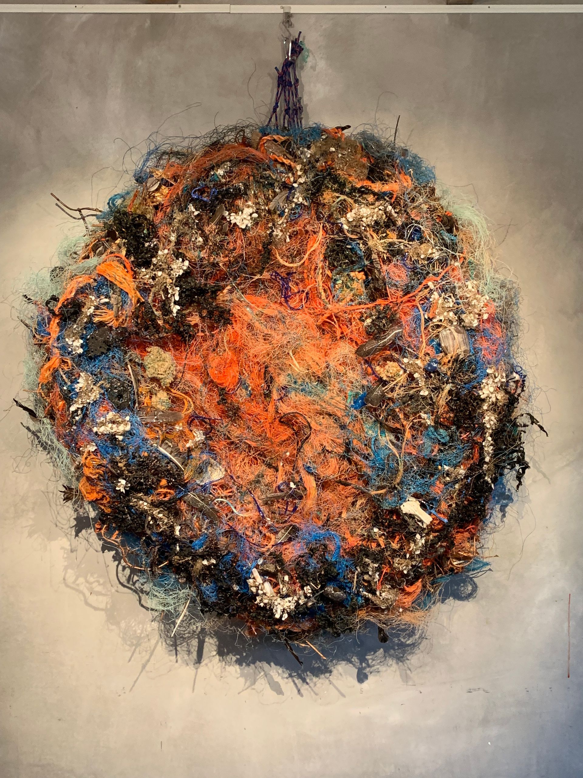Over: Rond maart 2020 heeft Jolanda het werken met textiel herontdekt en sindsdien is zij vanuit haar achtergrond als beeldhouwer op zoek naar het ontmoetingspunt van borduurwerk en beeldhouwwerk. De visuele verhalenverteller in haar maakt dat zij zowel als beeldhouwer als in haar textielwerk geïnteresseerd is in de natuur, in mensen en hun gedrag in de samenleving. Van de stoffen die zij verzamelt, maakte zij in eerste instantie wandkleden, waarbij zij uitging van patchwork en daarop borduurde. Daarna volgden de beelden in textiel. Zij gebruikte daarvoor verschillende technieken zoals handborduren, machine borduren, foto transfers en mixed media. Door haar werk als beeldhouwer is Jolanda gewend om met harde materialen zoals keramiek en brons te werken. Met dezelfde creativiteit werkt zij nu met zachte materialen waarbij de vele mogelijkheden van expressie haar blijven fascineren. In de textielkunst werkt zij onderzoekend en is ‘al doende leert men’ haar motto. Voor haar sculpturale werk is de natuur haar grote inspiratiebron zoals in de serie ‘Mossels’. Daar geeft zij in de vorm uitdrukking aan de invloed van eb en vloed, en in de kleur aan het dag- en nachtritme van de mossel. Ook de mens is een belangrijke inspiratiebron. Eerst uitgevoerd in klei, volgden al snel figuren in beton, hout en brons. Odysseus en andere mythologische verhalen staan eveneens regelmatig centraal in haar werk zoals in de vogel-, konings- en ramsvrouwen. Haar werk is opgenomen in verschillende Nederlandse en buitenlandse collecties, waaronder particuliere verzamelingen, het Antonie van Leeuwenhoek Ziekenhuis Amsterdam, het Stadsarchief Gent (B), Chelsea and Westminster Hospital in Londen (UK) . Zij wordt vertegenwoordigd door Sille Galerie in Oudewater, Pansa Gallery in Amsterdam en Galerie De Beukenhof in Kluisbergen (België) Naast haar werk geeft Jolanda geeft online classes in ‘Photo Embroidery and Mixed Media’ en ‘how to develop a personal style” aan de New Yorkse Photo Academy Strudelmedia terwijl ze in Parijs lesgeeft bij Paris Collage Collective. Momenteel geeft ze Masterclasses Textiel in het Rietveldpaviljoen in Amersfoort.