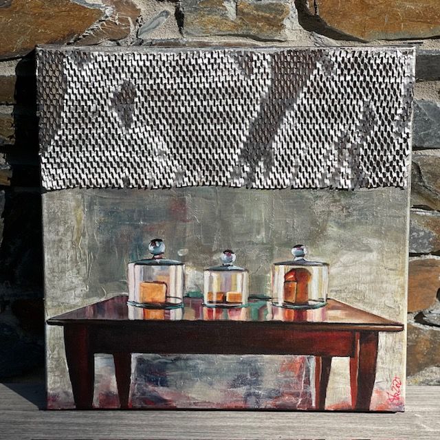 Ik werk voornamelijk met acrylverf, maar experimenteer graag met diverse materialen om mijn werk verder te verrijken. Mijn inspiratie haal ik vooral uit portretten van mens en dier, al laat ik me zo nu en dan ook verleiden tot het schilderen van een stilleven.