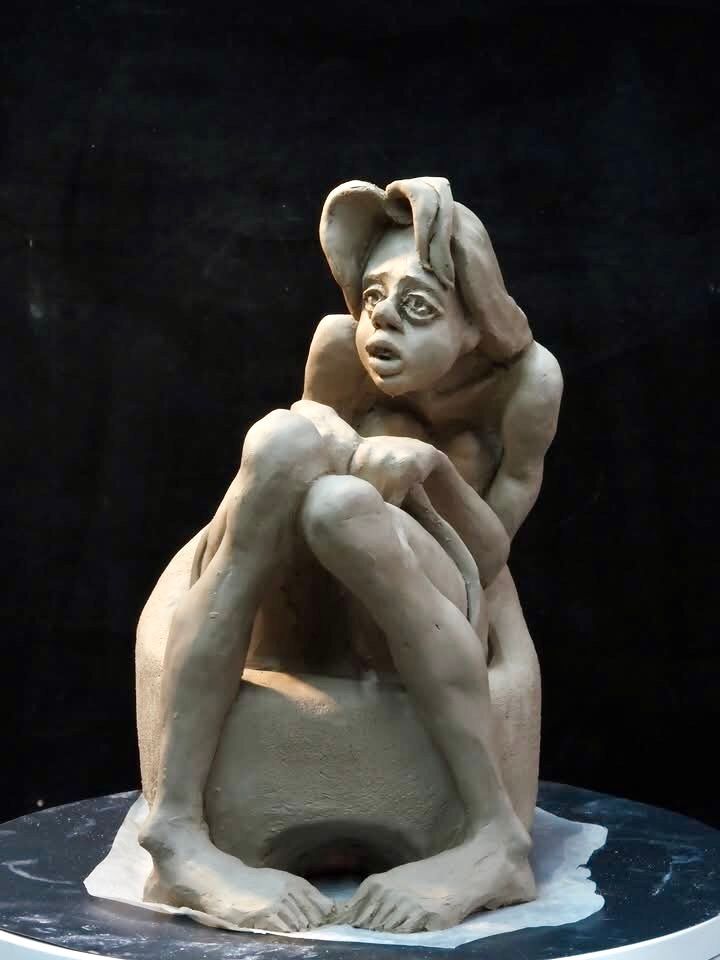 Over: Rond maart 2020 heeft Jolanda het werken met textiel herontdekt en sindsdien is zij vanuit haar achtergrond als beeldhouwer op zoek naar het ontmoetingspunt van borduurwerk en beeldhouwwerk. De visuele verhalenverteller in haar maakt dat zij zowel als beeldhouwer als in haar textielwerk geïnteresseerd is in de natuur, in mensen en hun gedrag in de samenleving. Van de stoffen die zij verzamelt, maakte zij in eerste instantie wandkleden, waarbij zij uitging van patchwork en daarop borduurde. Daarna volgden de beelden in textiel. Zij gebruikte daarvoor verschillende technieken zoals handborduren, machine borduren, foto transfers en mixed media. Door haar werk als beeldhouwer is Jolanda gewend om met harde materialen zoals keramiek en brons te werken. Met dezelfde creativiteit werkt zij nu met zachte materialen waarbij de vele mogelijkheden van expressie haar blijven fascineren. In de textielkunst werkt zij onderzoekend en is ‘al doende leert men’ haar motto. Voor haar sculpturale werk is de natuur haar grote inspiratiebron zoals in de serie ‘Mossels’. Daar geeft zij in de vorm uitdrukking aan de invloed van eb en vloed, en in de kleur aan het dag- en nachtritme van de mossel. Ook de mens is een belangrijke inspiratiebron. Eerst uitgevoerd in klei, volgden al snel figuren in beton, hout en brons. Odysseus en andere mythologische verhalen staan eveneens regelmatig centraal in haar werk zoals in de vogel-, konings- en ramsvrouwen. Haar werk is opgenomen in verschillende Nederlandse en buitenlandse collecties, waaronder particuliere verzamelingen, het Antonie van Leeuwenhoek Ziekenhuis Amsterdam, het Stadsarchief Gent (B), Chelsea and Westminster Hospital in Londen (UK) . Zij wordt vertegenwoordigd door Sille Galerie in Oudewater, Pansa Gallery in Amsterdam en Galerie De Beukenhof in Kluisbergen (België) Naast haar werk geeft Jolanda geeft online classes in ‘Photo Embroidery and Mixed Media’ en ‘how to develop a personal style” aan de New Yorkse Photo Academy Strudelmedia terwijl ze in Parijs lesgeeft bij Paris Collage Collective. Momenteel geeft ze Masterclasses Textiel in het Rietveldpaviljoen in Amersfoort.