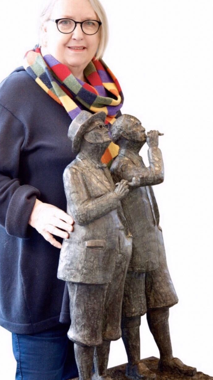 Over: Rond maart 2020 heeft Jolanda het werken met textiel herontdekt en sindsdien is zij vanuit haar achtergrond als beeldhouwer op zoek naar het ontmoetingspunt van borduurwerk en beeldhouwwerk. De visuele verhalenverteller in haar maakt dat zij zowel als beeldhouwer als in haar textielwerk geïnteresseerd is in de natuur, in mensen en hun gedrag in de samenleving. Van de stoffen die zij verzamelt, maakte zij in eerste instantie wandkleden, waarbij zij uitging van patchwork en daarop borduurde. Daarna volgden de beelden in textiel. Zij gebruikte daarvoor verschillende technieken zoals handborduren, machine borduren, foto transfers en mixed media. Door haar werk als beeldhouwer is Jolanda gewend om met harde materialen zoals keramiek en brons te werken. Met dezelfde creativiteit werkt zij nu met zachte materialen waarbij de vele mogelijkheden van expressie haar blijven fascineren. In de textielkunst werkt zij onderzoekend en is ‘al doende leert men’ haar motto. Voor haar sculpturale werk is de natuur haar grote inspiratiebron zoals in de serie ‘Mossels’. Daar geeft zij in de vorm uitdrukking aan de invloed van eb en vloed, en in de kleur aan het dag- en nachtritme van de mossel. Ook de mens is een belangrijke inspiratiebron. Eerst uitgevoerd in klei, volgden al snel figuren in beton, hout en brons. Odysseus en andere mythologische verhalen staan eveneens regelmatig centraal in haar werk zoals in de vogel-, konings- en ramsvrouwen. Haar werk is opgenomen in verschillende Nederlandse en buitenlandse collecties, waaronder particuliere verzamelingen, het Antonie van Leeuwenhoek Ziekenhuis Amsterdam, het Stadsarchief Gent (B), Chelsea and Westminster Hospital in Londen (UK) .  Zij wordt vertegenwoordigd door Sille Galerie in Oudewater, Pansa Gallery in Amsterdam en Galerie De Beukenhof in Kluisbergen (België) Naast haar werk geeft Jolanda geeft online classes in ‘Photo Embroidery and Mixed Media’ en ‘how to develop a personal style” aan de New Yorkse Photo Academy Strudelmedia terwijl ze in Parijs lesgeeft bij Paris Collage Collective. Momenteel geeft ze Masterclasses Textiel in het Rietveldpaviljoen in Amersfoort.